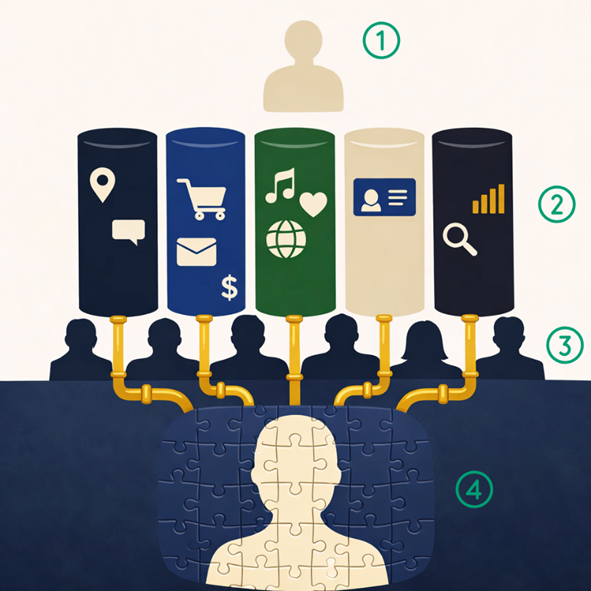 The companies providing you the service in step #2 are called data aggregators, and they store your data in the silos. Each silo reveals something unique about you.