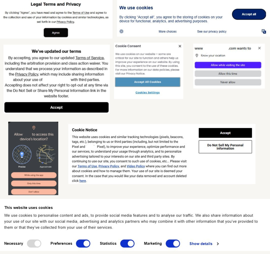 Data buyers rarely buy directly from individual consumers; they need data aggregators to collect data from large groups before it becomes valuable. Traditional data aggregators know this and disguise their motives with “free” or discounted services to give the illusion of consent to deeply drill their users for data. Below are recognizable images that show how your consent is manufactured.